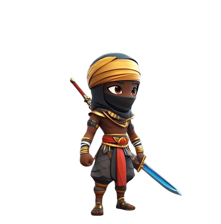 An Egyptian boy warrior, gifted with dark powers, wields ancient magic with precision. His strength is enhanced by shadowy forces, while his great feathered wings allow him to soar above battlefields.